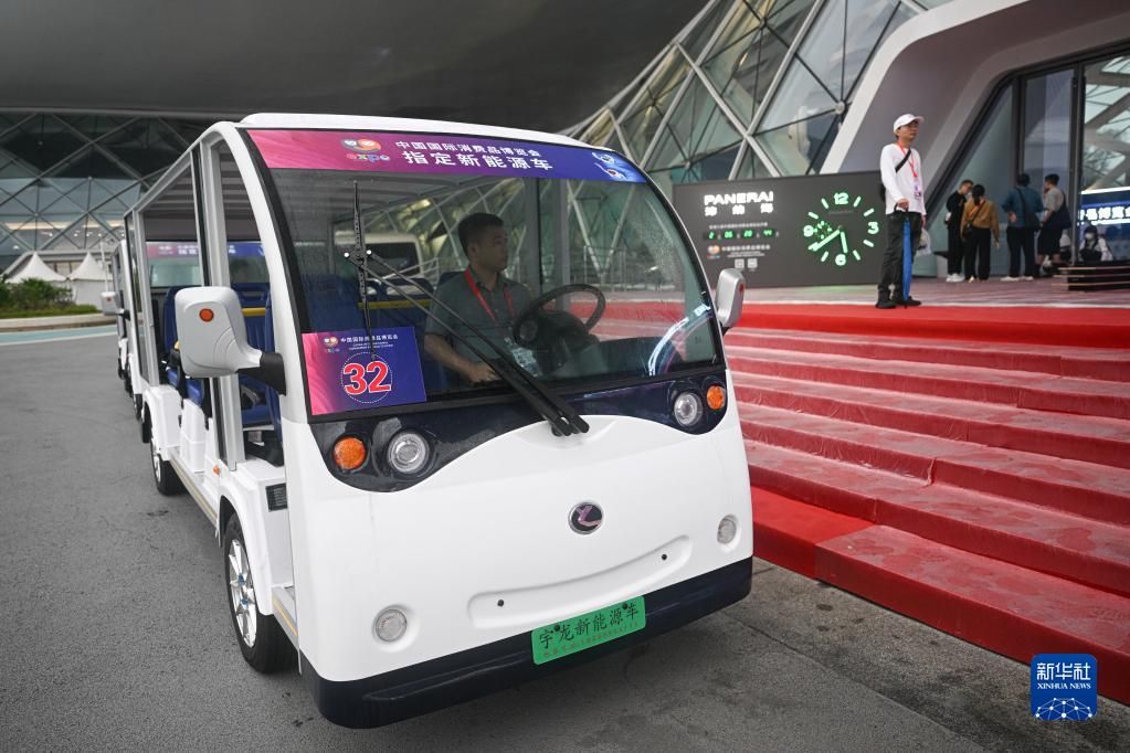在消博会场馆外拍摄的新能源摆渡车(4月8日摄)。新华社