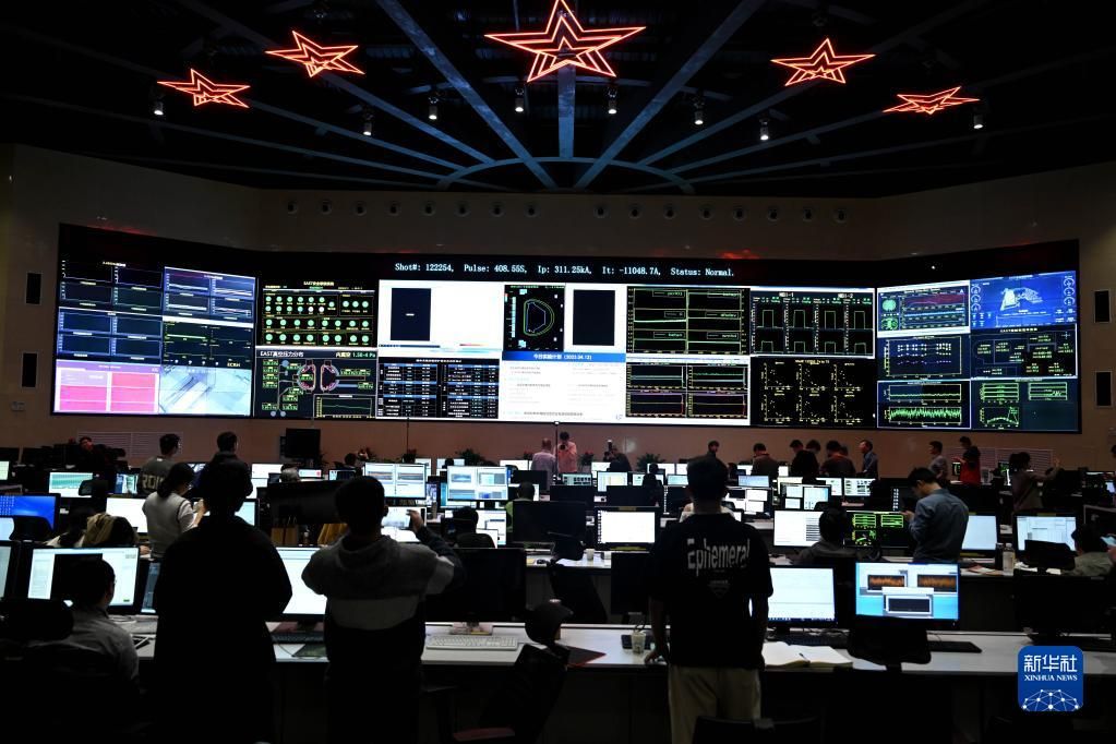 4月12日,位于中国安徽合肥科学岛的有“人造太阳”之称的全超导托卡马克核聚变实验装置(EAST)在第122254次实验中创造新的世界纪录,成功实现稳态高约束模式等离子体运行403秒。图为实验成功后的全超导托卡马克核聚变实验装置(EAST)控制大厅(4月12日摄)。新华社