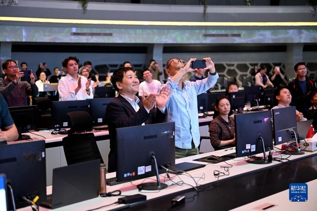 4月12日,在全超导托卡马克核聚变实验装置(EAST)控制大厅,科研人员在实验成功后庆祝。新华社