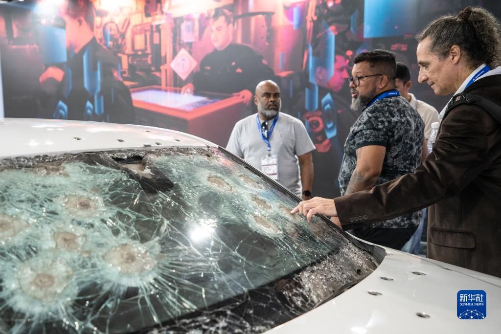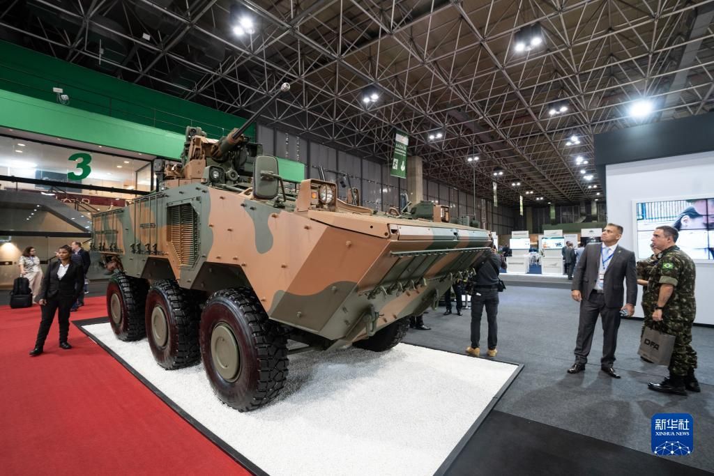 为期4天的2023拉丁美洲航空航天与防务展(又称巴西防务展)11日在巴西里约热内卢开幕,共有超过400个品牌的厂商带来各种军事、国防和安保设备,其中,多家来自中国的参展商展出了拥有高新技术的军用和民用设备,期待进一步开拓拉美市场。图为参观者在巴西防务展上观看经过加固防护的车辆。新华社