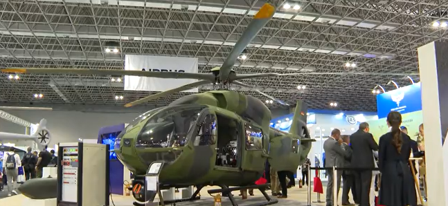 防务展现场展出的一架直升机。巴西网站“G1”