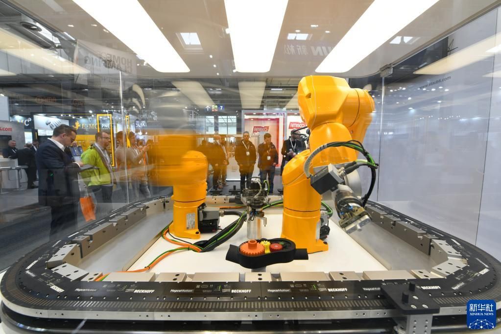 一款智能线性机器人在德国汉诺威工业博览会上进行工作演示。新华社