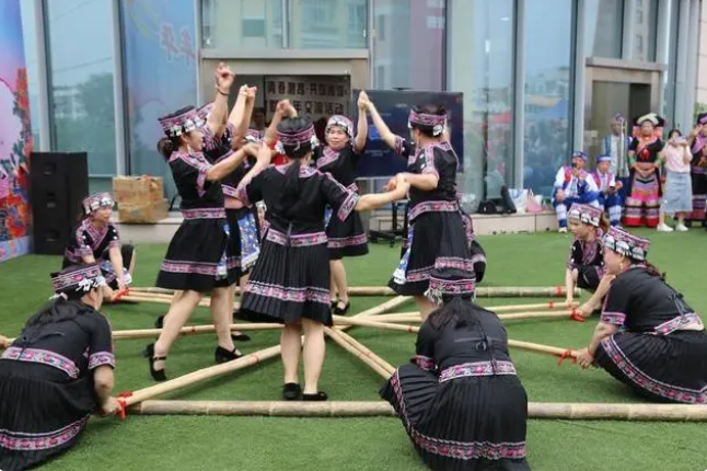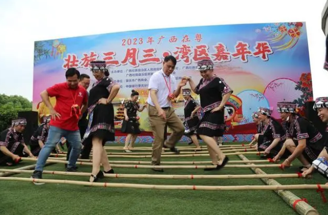 近期正值广西“壮族三月三”假期,每逢“三月三”,广西当地民众会通过对唱山歌、跳起“竹竿舞”等方式欢度节日。 4月23日,“壮族三月三 湾区嘉年华”系列活动在肇庆市举行。活动现场,壮乡祝酒歌、竹竿舞、抛绣球以及五色饭等独具广西特色的文化和美食盛宴吸引了1000余人次的市民热情参与。羊城晚报