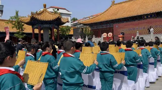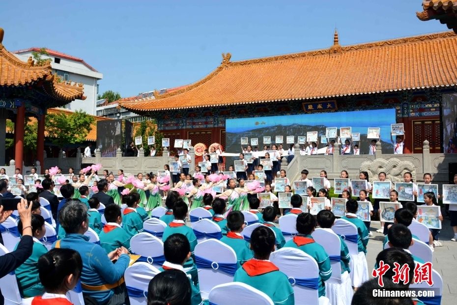 4月27日,小学生在山东济南府学文庙表演。中新网