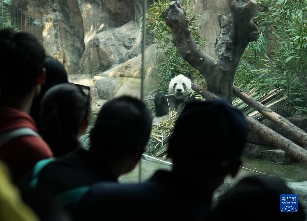 4月30日,游客在北京动物园大熊猫馆观赏大熊猫。新华社