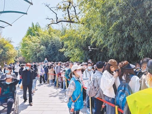 4月29日,“萌兰”运动场外排起长队。“7点半动物园开园,8点大熊猫馆开馆,馆外的长队就没断过。放假了,游客多了好多。别的区域可能好点儿,大熊猫馆可是最火的。”维持秩序的工作人员说。《北京晚报》
