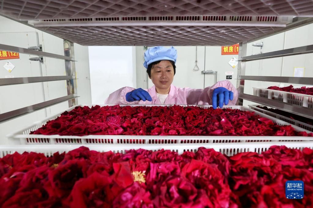 近年来,安徽省黄山市徽州区因地制宜,大力发展玫瑰花种植,有效带动周边村民增收,为乡村振兴注入“花”式活力。近日,当地种植的“墨红玫瑰”陆续进入采摘期,村民忙着采摘、翻晾、加工玫瑰花,供应市场。图为村民将采收的玫瑰拆瓣分拣。中新网