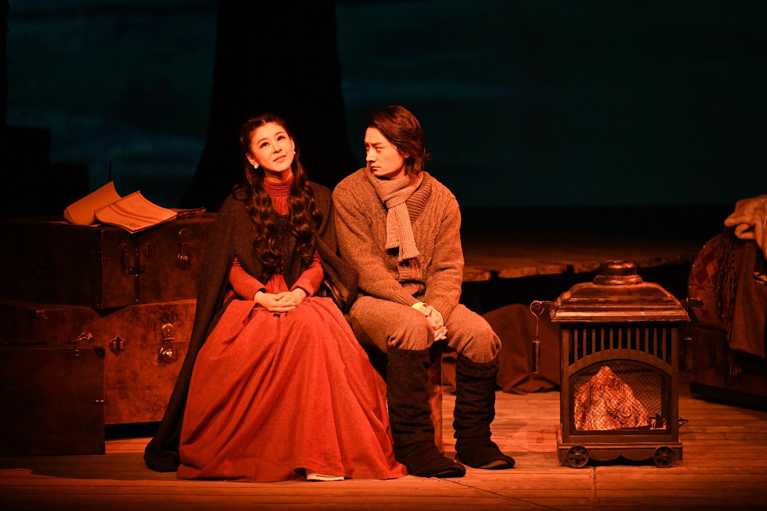 4月30日,《海鸥》在曹禺剧场彩排,演员李小萌(左)扮演妮娜,李越扮演科斯佳。 史春阳 摄