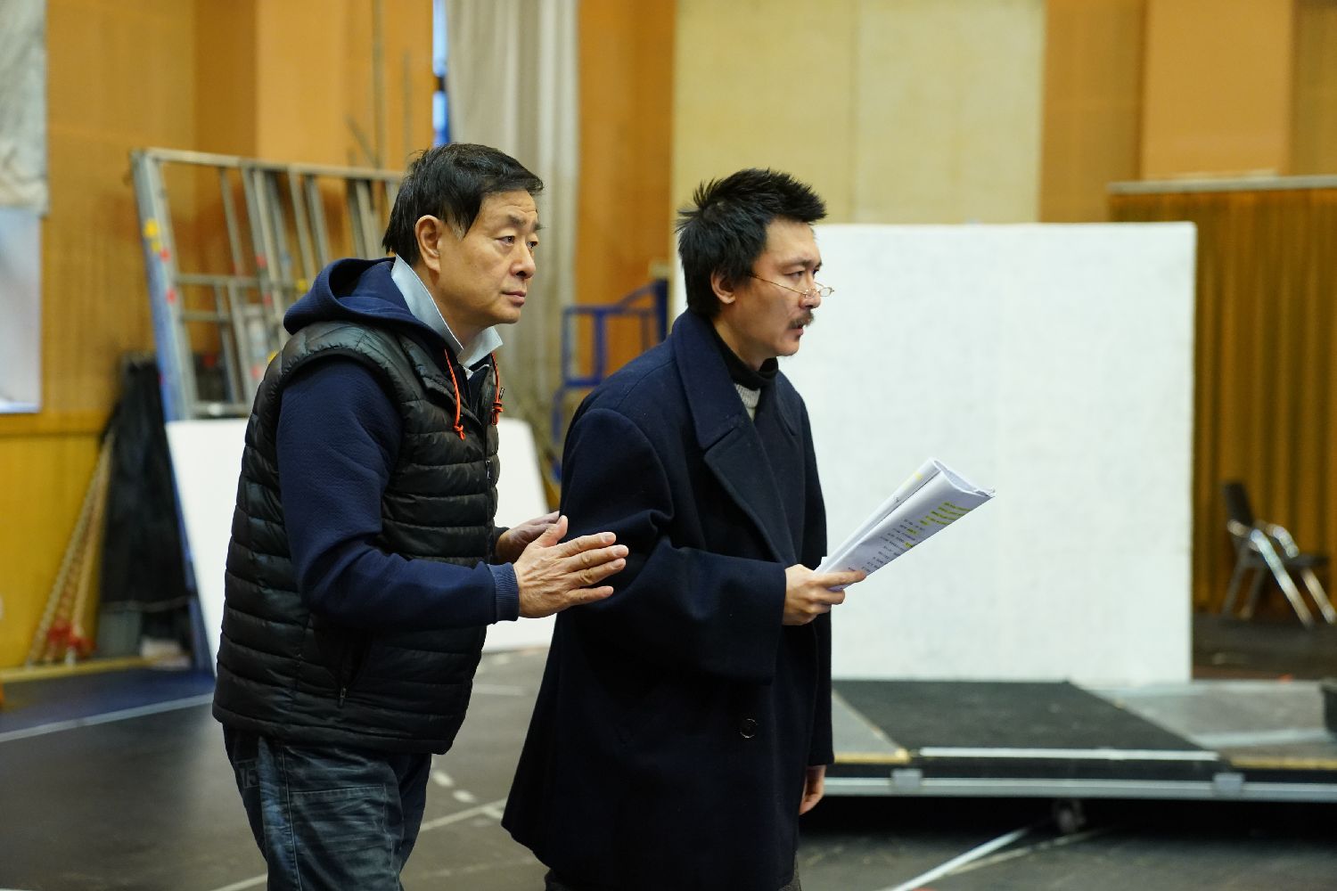3月1日,濮存昕(左)指导演员李劲峰排练。 史春阳 摄