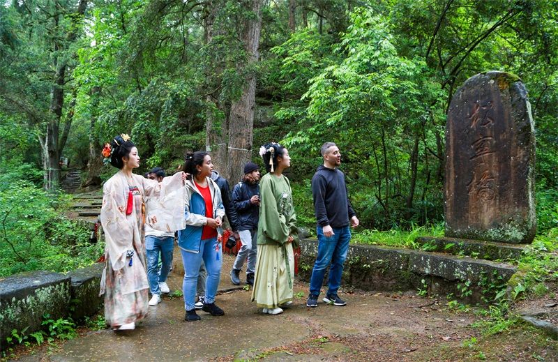 烟雨朦胧五月天,蜀道风光美如画。5月9日,来自德国、日本、南非、巴基斯坦等国家的8位国际知名摄影师、媒体人走进位于广元市昭化区昭化镇的古蜀道松宁桥,切身感受蜀道文化魅力。 “古树、古桥、古道……从望夫桥到松宁桥一路走过,踩在年代久远的石板路上,感受到了中国古人的智慧,也让我对蜀道文化有了更深的认识。” 国际媒体人、孟加拉国网络主播Hossain一边走,一边拍。四川新闻网