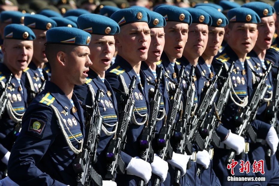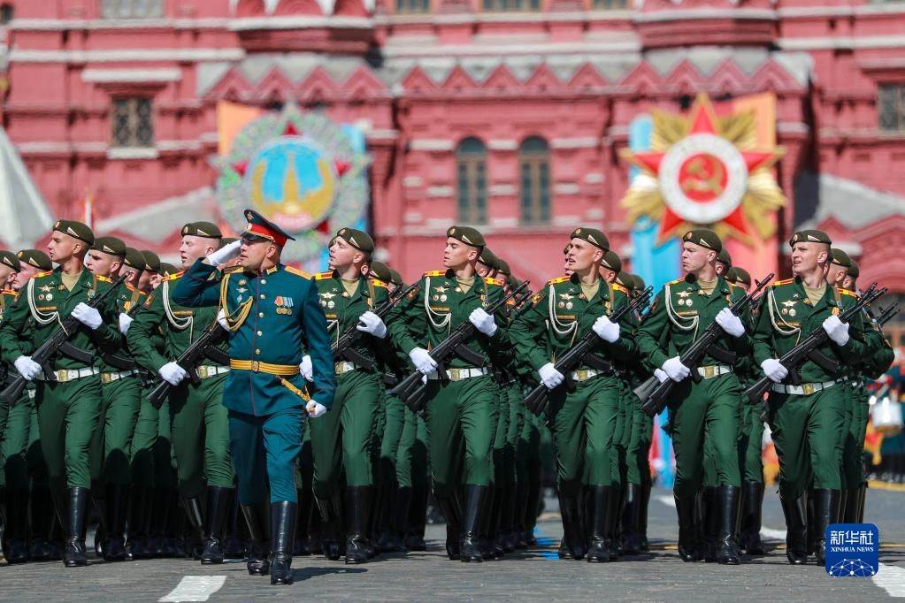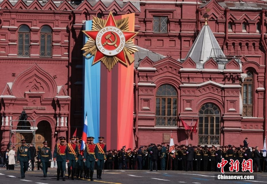 5月9日,在俄罗斯首都莫斯科,士兵列队走过红场。新华社