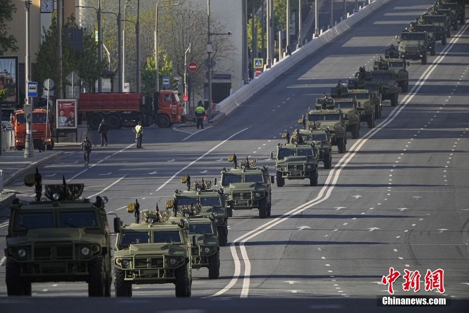 当地时间5月9日,俄罗斯莫斯科,纪念卫国战争胜利78周年阅兵式在红场举行。图为参加检阅的装备部队前往阅兵式现场。中新网