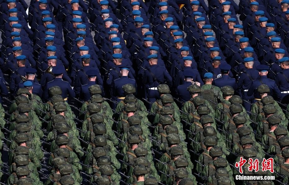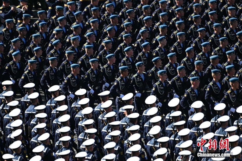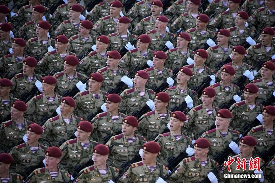 当地时间5月9日,俄罗斯莫斯科,纪念卫国战争胜利78周年阅兵式在红场举行。图为列队的军人。中新网