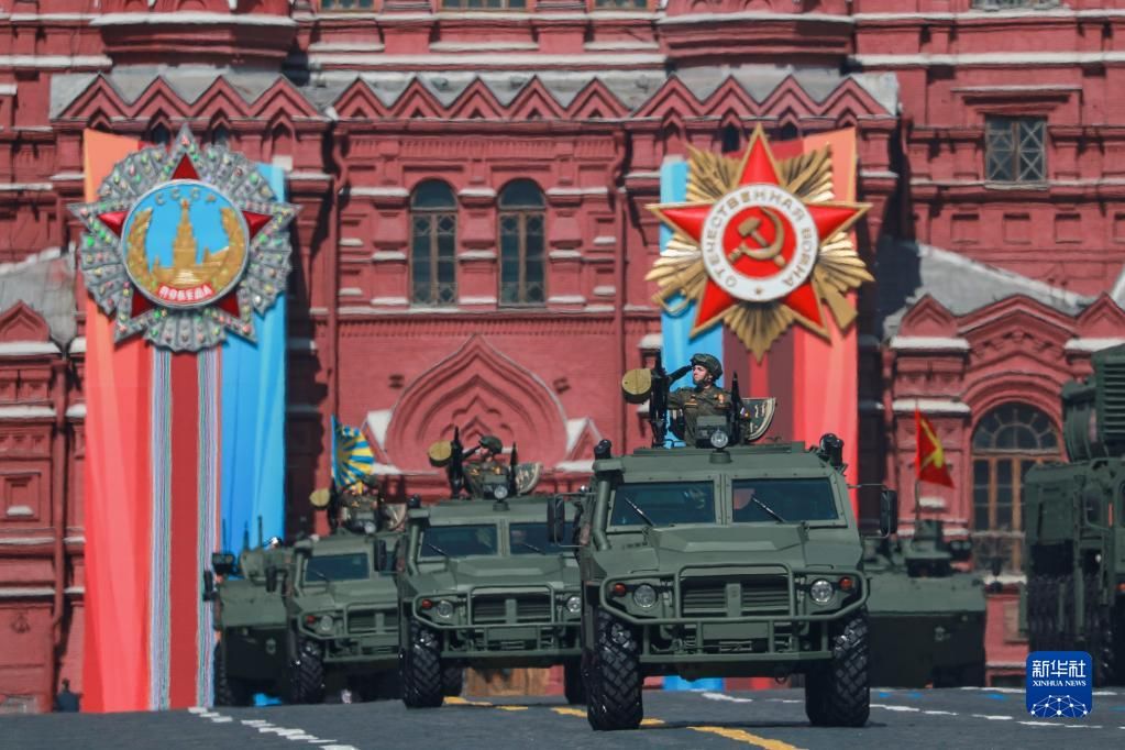 5月9日,在俄罗斯首都莫斯科,军车编队驶过红场。新华社
