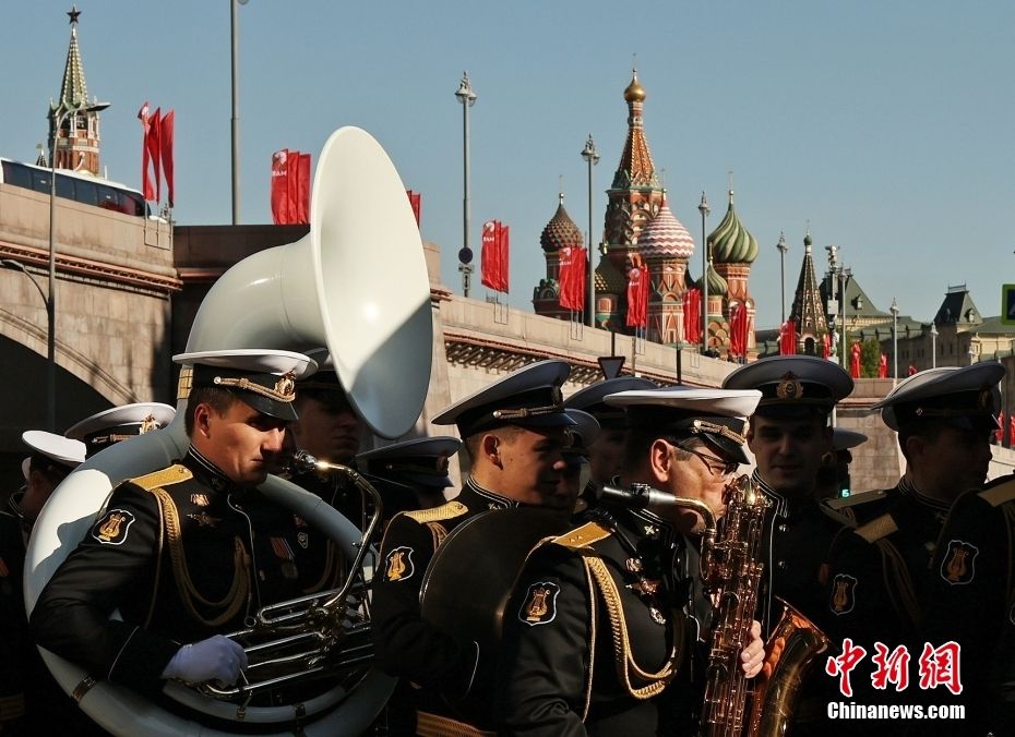 军乐队成员抵达红场参加阅兵式。中新网