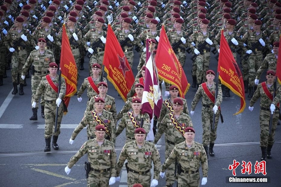 5月9日,俄罗斯莫斯科,纪念卫国战争胜利78周年阅兵式在红场举行。图为参加检阅的士兵前往红场参加阅兵式。中新网