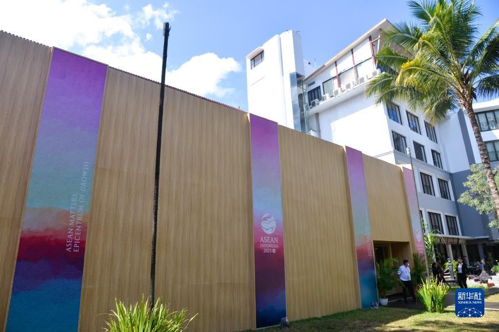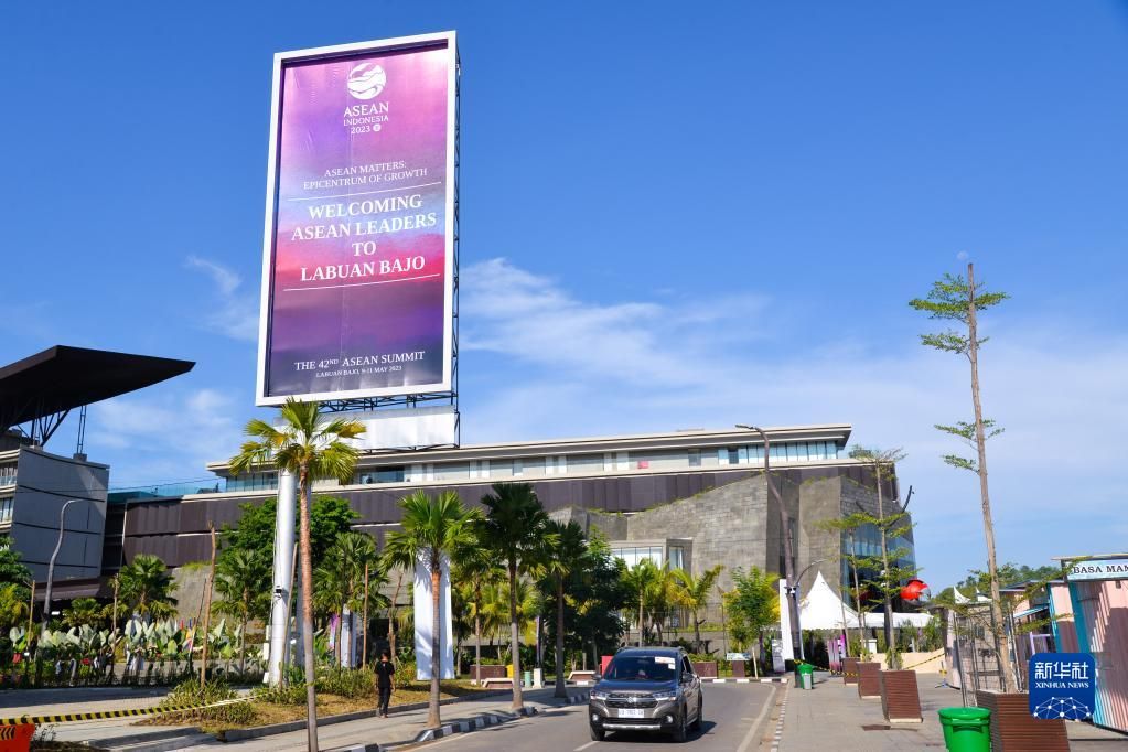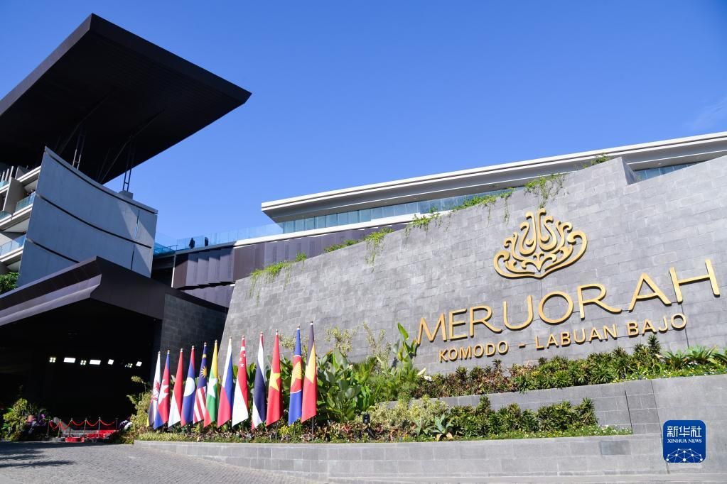 第42届东盟峰会10日在印度尼西亚东部旅游小城纳闽巴霍开幕。印尼总统佐科呼吁成员国加强团结与经济一体化。图为在印度尼西亚纳闽巴霍拍摄的第42届东盟峰会会场外景。