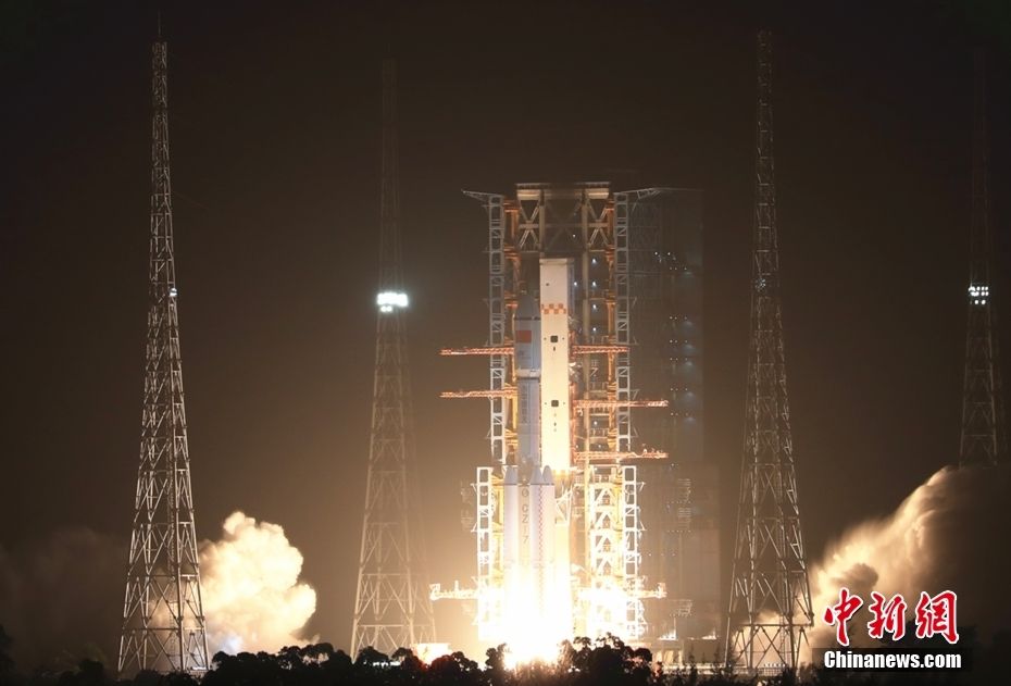 5月10日21时22分,搭载天舟六号货运飞船的长征七号遥七运载火箭,在我国文昌航天发射场点火发射,约10分钟后,船箭成功分离并进入预定轨道,之后,飞船太阳能帆板顺利展开工作,发射取得圆满成功。图为长征七号运载火箭成功发射天舟六号货运飞船。中新网