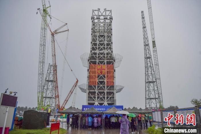 海南商业航天发射场是中国首个开工建设的商业航天发射场,近日,该商业航天发射场1号工位主体结构提前20天封顶。图为5月11日,海南商业航天发射场1号工位举行主体结构封顶仪式。中新网