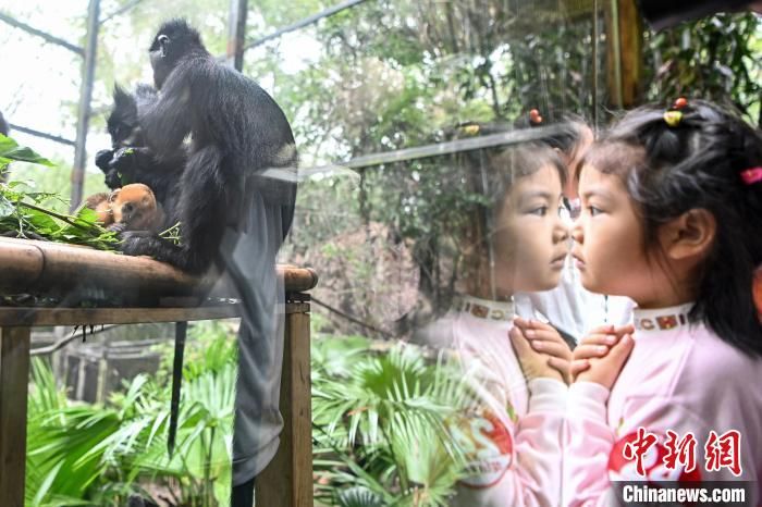 黑叶猴宝宝“想你”吸引游客。中新网