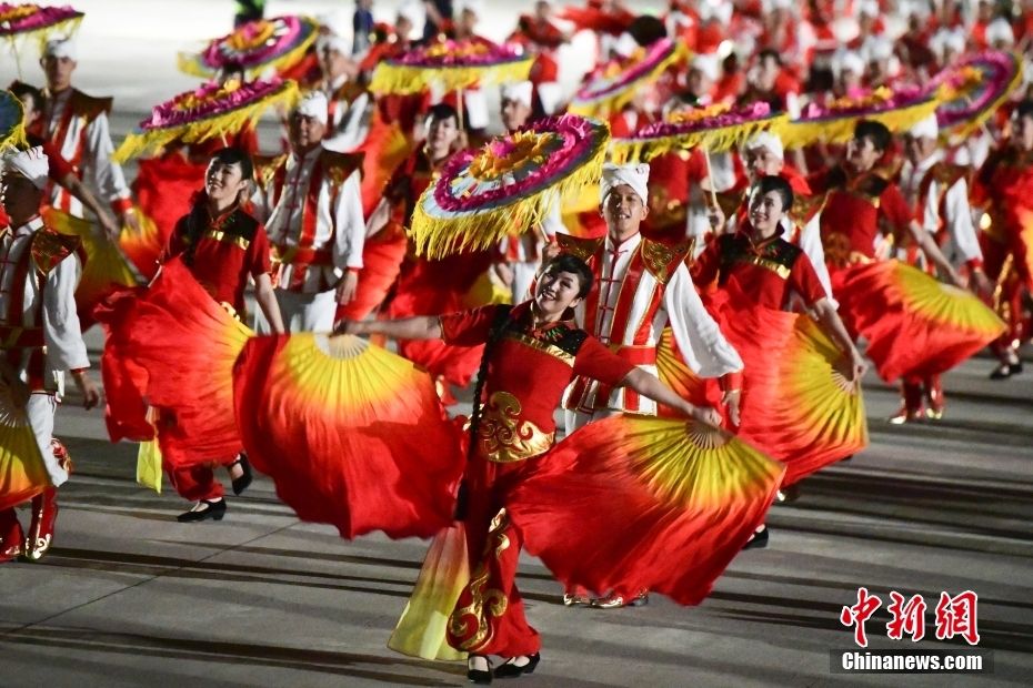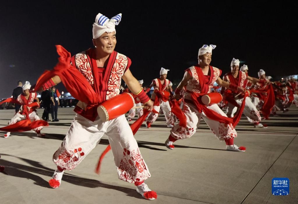 5月17日下午,当地民众以热情的腰鼓、欢快的秧歌等民间艺术表演欢迎中亚国家贵宾到来。新华社