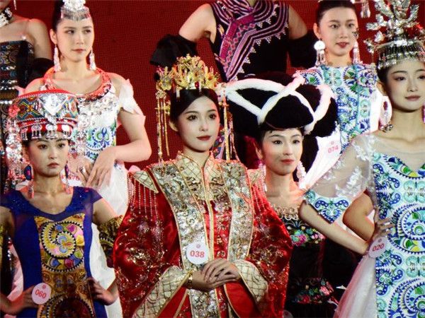 5月19日,第72届世界小姐中国区总决赛在云南大理白族自治州三塔广场举行,来自中国的100位选手进行民族服装、运动活力装和高级定制的白族礼服三个环节的展示,加上之前在大理多地举行的各个单项赛,最终各个奖项有了归属。图为参赛选手们身着各民族服装精彩亮相。中新网