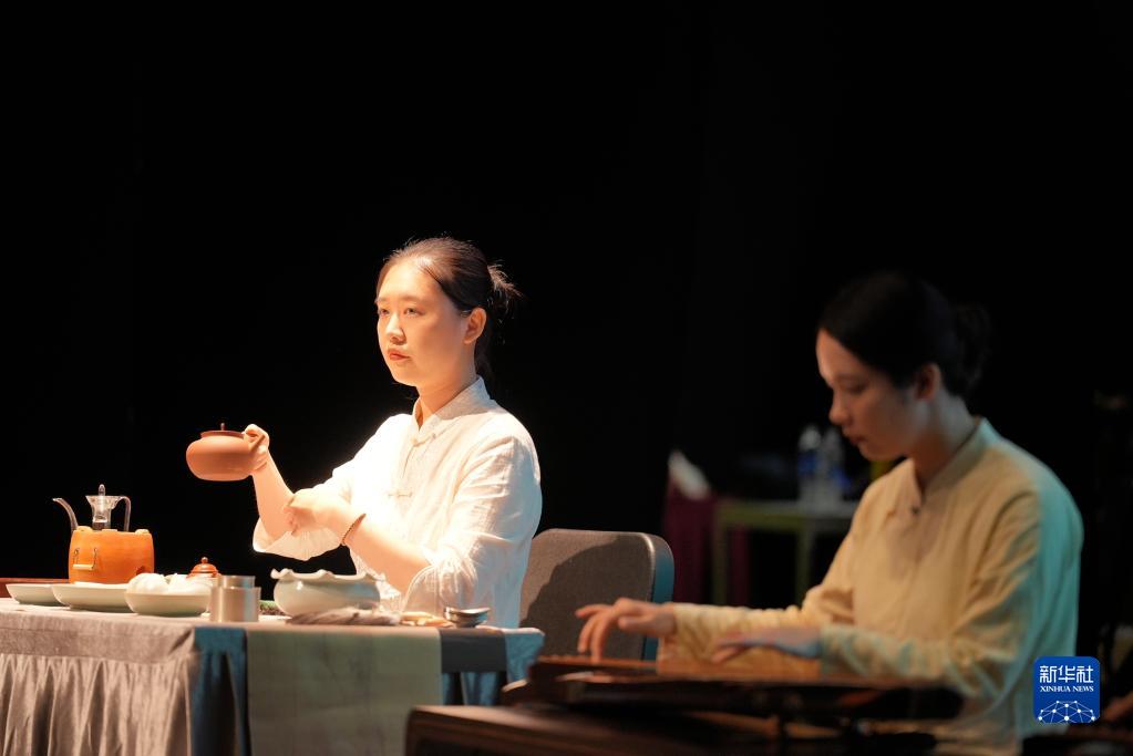 5月20日,表演者在新加坡中国文化中心举行的“茶和天下·粤韵雅集”活动中进行茶艺展示和古琴演奏。新华社