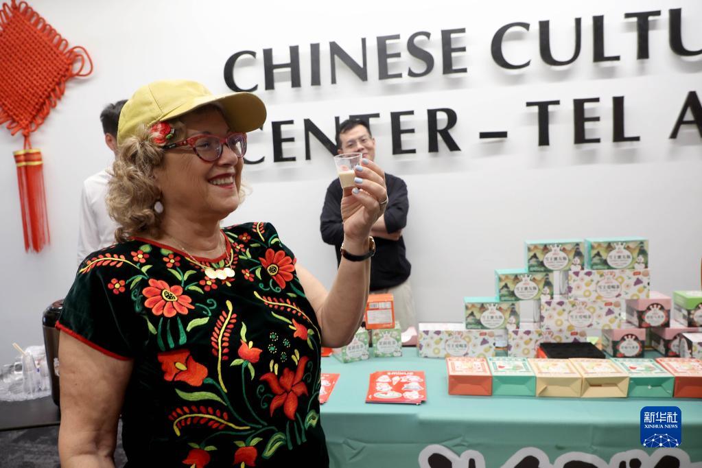 一名参观者在以色列特拉维夫中国文化中心“茶和天下·雅集——美在郑州”推广活动上品茶。新华社