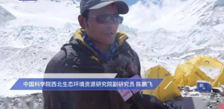 中国科学院西北生态环境资源研究院副研究员陈鹏飞:冰芯小组还有七个人,我们现在已经钻取了一支透底冰芯,长度是118.7米。现在正在钻取第二支冰芯。大陆央视新闻