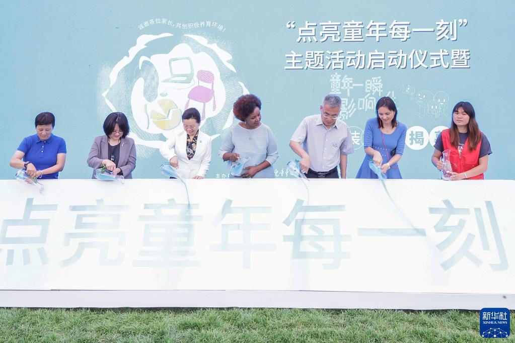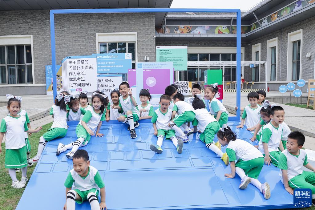 本次主题活动以《童年一瞬 影响一生》艺术装置展为核心,通过搭建展陈一系列艺术装置、绘画、影像等,以互动体验等综合形式呈现儿童在家庭、校园与网络空间环境中可能面临的暴力风险,并为不同年龄段的儿童及家长提供专业指导资料,宣传保障儿童权益的相关法律政策,不断提升儿童保护的意识和能力。图为5月31日,与会嘉宾共同启动主题活动。新华社