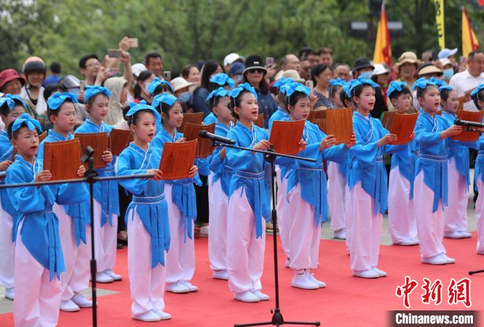 6月1日,以“相约智圣故里·遇见时尚临沂”为主题的第十届临沂诸葛亮文化旅游节开幕。本次旅游节持续40天,涵盖游、会、赛、展、演等多种形式,全面展示智圣文化的无限魅力和临沂的文旅资源优势。当日,纪念诸葛亮诞辰1842周年祭拜大典在山东省临沂市沂南县举行,来自中国各地的专家学者、诸葛后裔和市民代表等社会各界人士一同参与大典,祭拜“智圣”诸葛亮。图为祭拜大典上的“鸣钟击鼓”表演。中新网