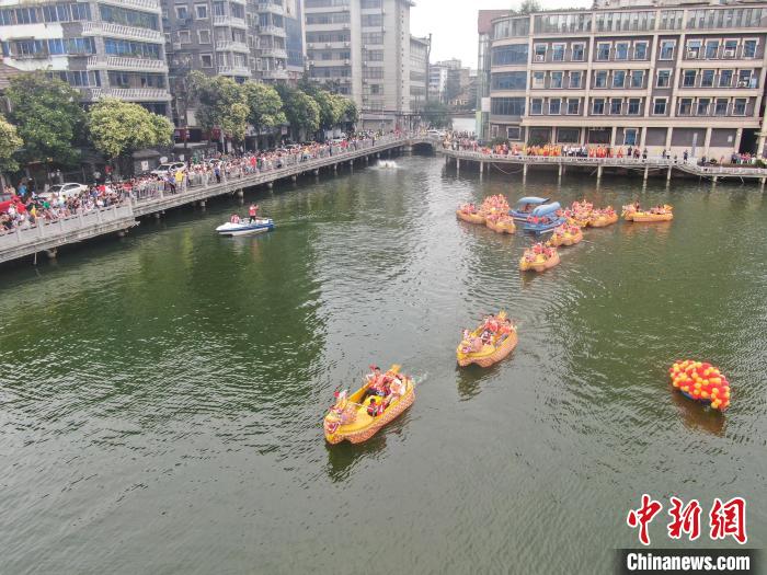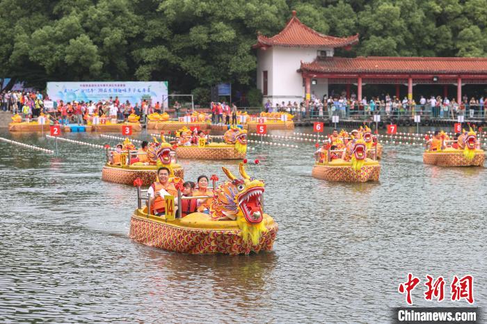 比赛现场,一艘艘“龙舟”驶出起点开始比赛。中新网