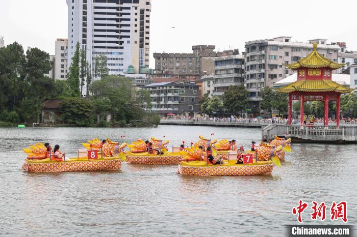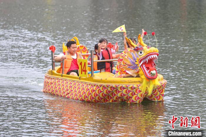 比赛现场,一艘艘“龙舟”奋力向前。中新网