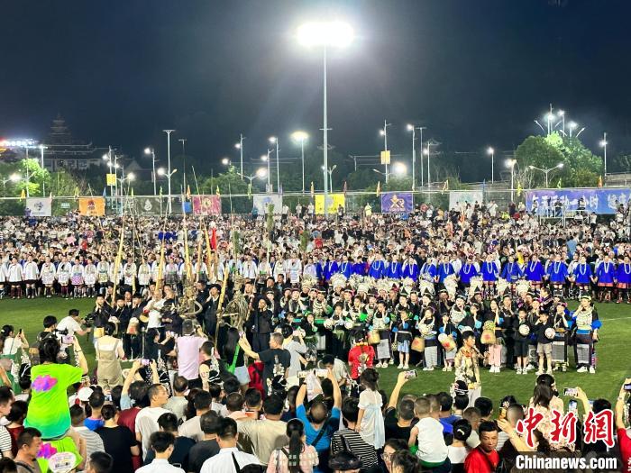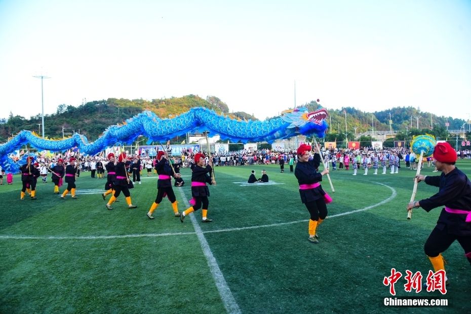 “村超”中场上演的民族文化展演。中新网