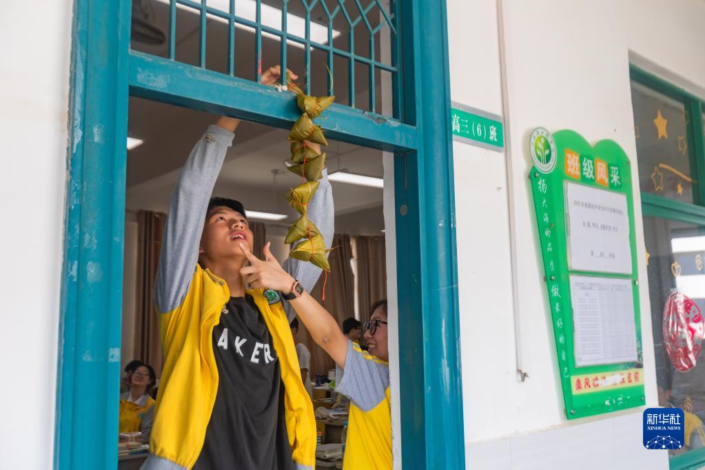 6月5日,江西省永新县永新中学学生挂起粽子,寓意在高考中“高中”。新华社