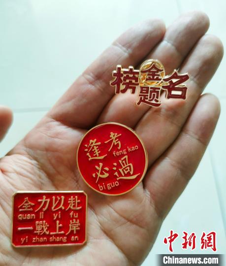 宁德“爱心直通车”司机谭金锁为考生们准备的鼓励勋章。中新网/谭金锁供图