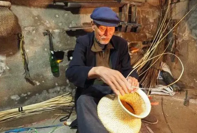 青云镇柳庄村79岁的王文利老艺人在地窖中编织工艺品。《齐鲁晚报》齐鲁壹点