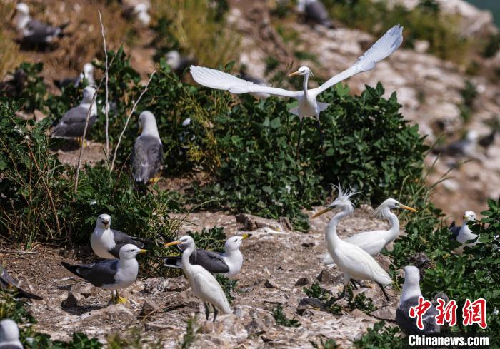 每年有数以万计的黑尾鸥和黄嘴白鹭来此繁衍、栖息。中新网