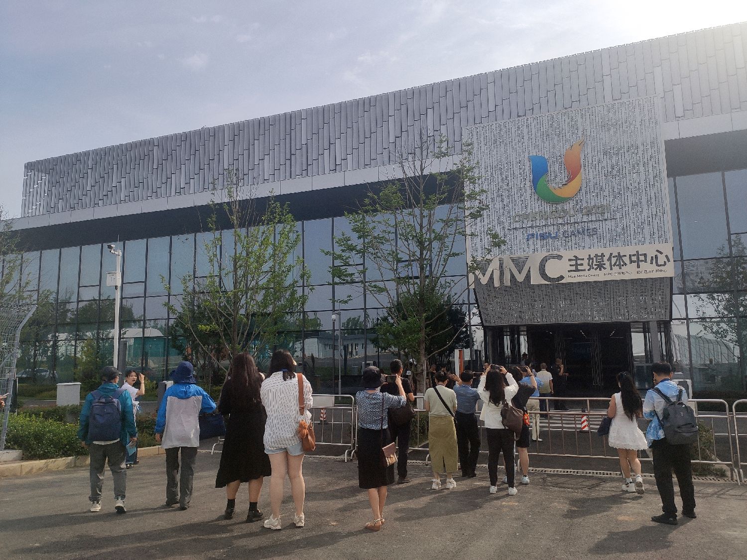 第31届世界大学生夏季运动会将于2023年7月28日至8月8日在成都举行,筹备工作已接近尾声。6月9日至16日,“海外华文媒体看大运”参访团走进四川成都,参访成都第31届世界大学生夏季运动会筹备情况。图为6月10日,参访团在位于东安湖体育公园的成都大运会主媒体中心门前拍照。 (言言)