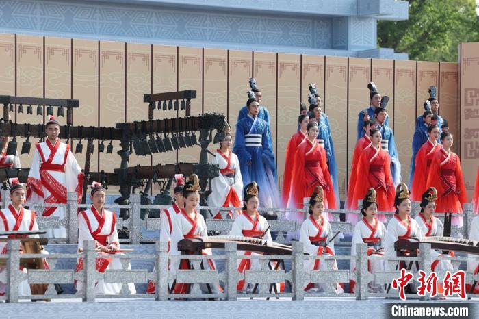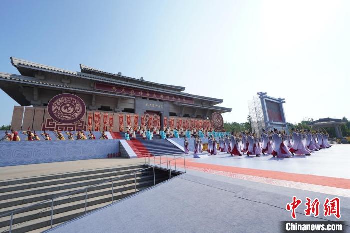 6月13日,农历四月廿六是炎帝神农诞辰纪念日,“四海一家亲共圆中国梦”癸卯年世界华人炎帝故里寻根节开幕式暨拜谒炎帝神农大典,在湖北随州炎帝故里景区和神农架神农坛景区举行。海内外炎黄子孙再次齐聚烈山,缅怀始祖功德,传承炎帝精神。图为拜谒大典上扶犁乐舞。中新网