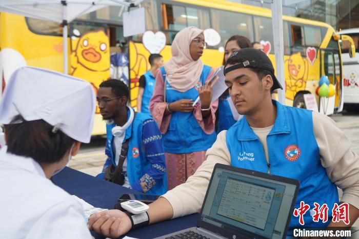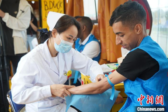 血液是一种无法人工合成、不能长期保存且无法替代的宝贵资源。一滴热血,一片爱心,无偿献血点燃希望之光。6月14日,第20个世界献血者日来临之际,“热血”的他们为生命传递能量。 6月13日,20名在中国江西的留学生组团前往血站献血。据了解,这些留学生都是江西财经大学雷锋国际志愿者协会的志愿者,分别来自孟加拉国、卢旺达、摩洛哥、坦桑尼亚、缅甸等国家,共计献血4400ml。图为在赣留学生献血。中新网