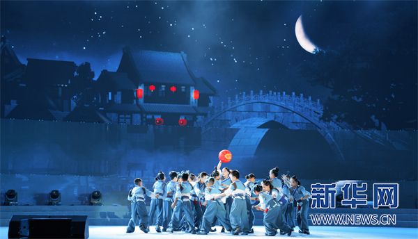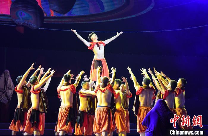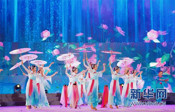 开幕式文艺晚会的歌舞表演。新华网