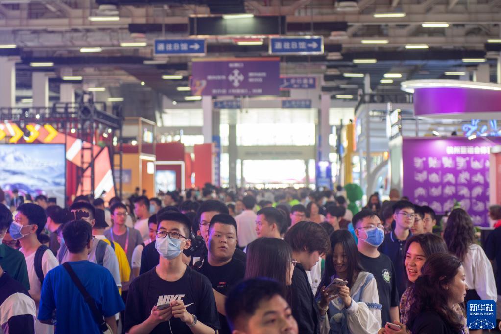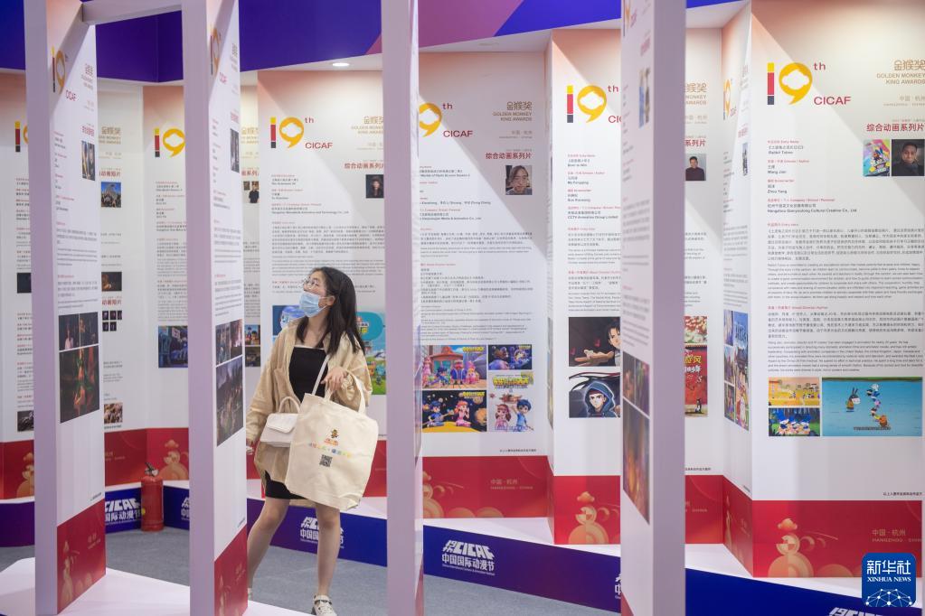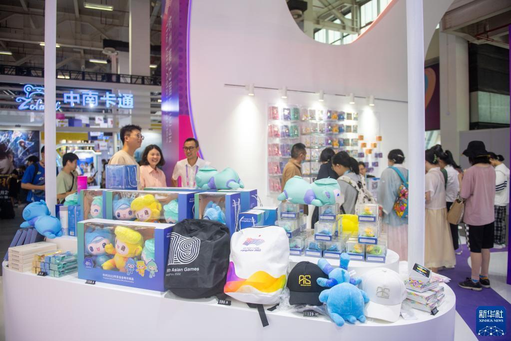 6月20日,第十九届中国国际动漫节在浙江省杭州市开幕。本届动漫节以“动漫之都 亚运之城”为主题,举办时间为6月20日至24日,拥有展示、赛事、论坛、商务、活动等五大板块20余项内容。图为6月20日,观众在第十九届中国国际动漫节产业博览会上参观杭州亚运会展台。新华社
