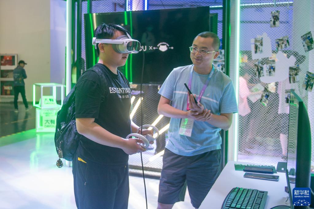 6月20日,观众在第十九届中国国际动漫节产业博览会上体验虚拟现实产品。新华社