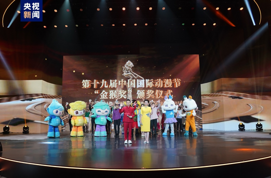 6月20日晚,由中央广播电视总台主办的第十九届中国国际动漫节“金猴奖”颁奖仪式在杭州举行。《新大头儿子和小头爸爸5我的外星朋友》《雄狮少年》《深海》等34部作品获奖。图为颁奖仪式现场。大陆央视新闻网