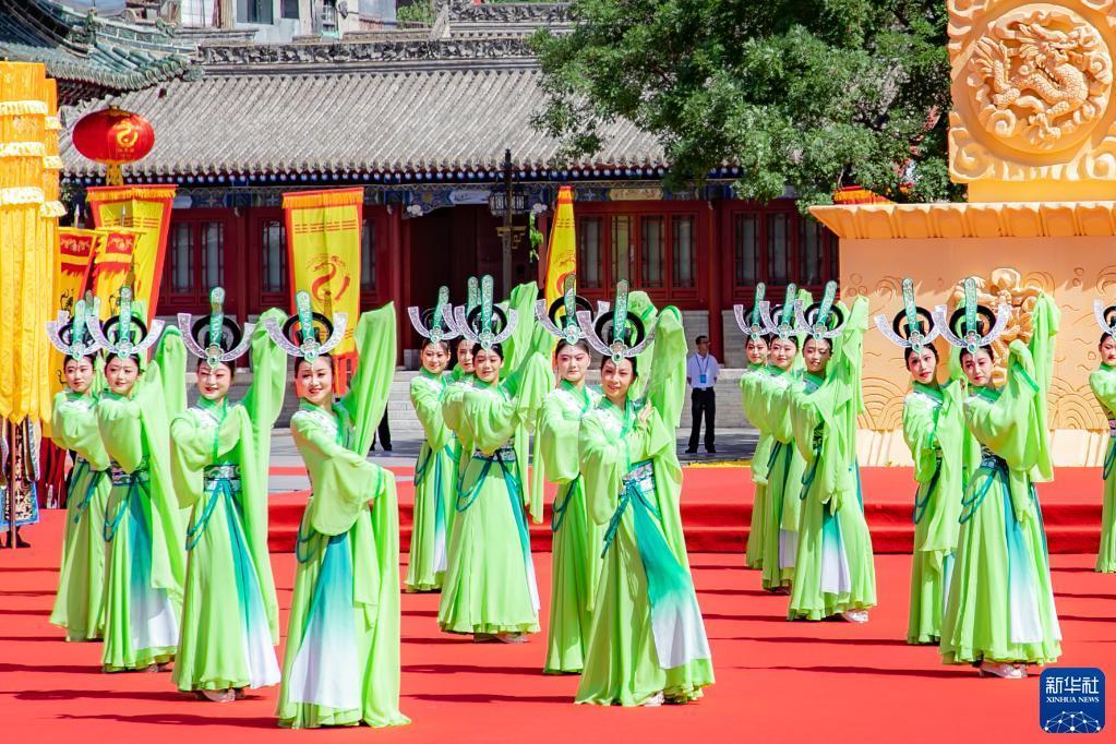 6月22日,演员在公祭伏羲大典上表演乐舞告祭仪式。新华社