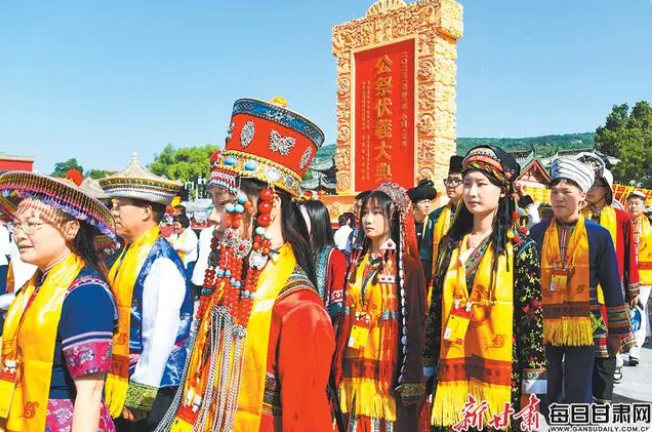 五十六个民族代表有序进入伏羲庙敬献鲜花。新甘肃《甘肃日报》