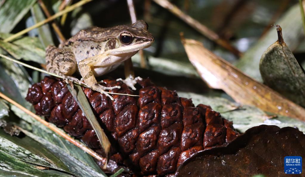 海南热带雨林是热带生物多样性和遗传资源的宝库和海南岛生态安全屏障。海南省推进雨林生态修复,锻造绿色屏障,努力使海南热带雨林“国宝”重焕蓬勃生机。 图为在中国海南热带雨林国家公园吊罗山片区拍摄的细刺水蛙(6月13日摄)。新华社