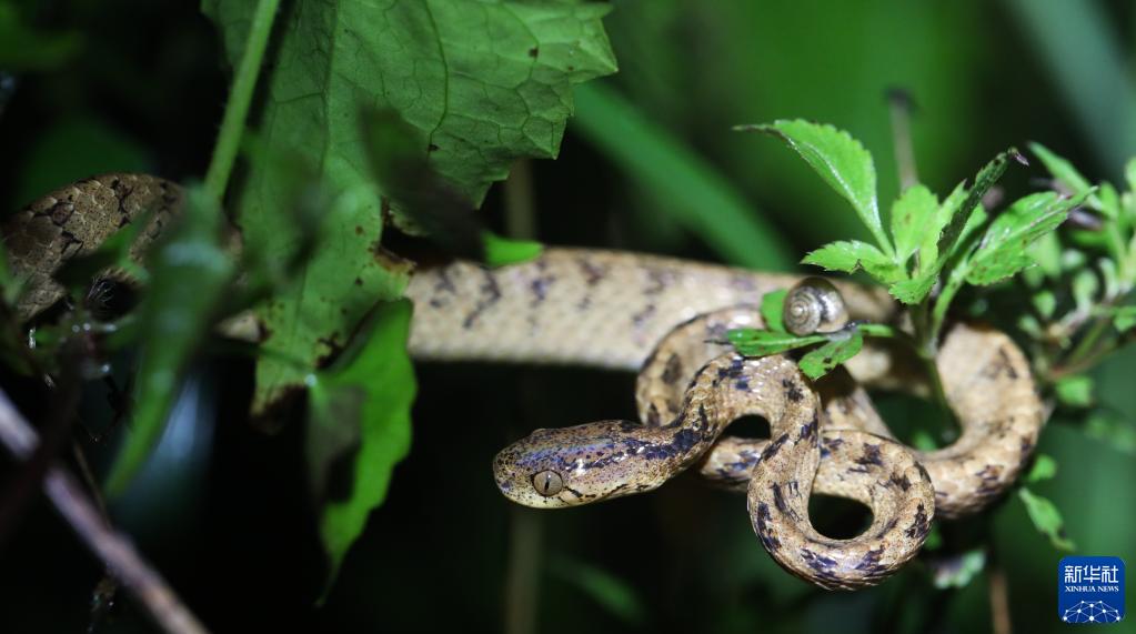 在中国海南热带雨林国家公园吊罗山片区拍摄的缅甸钝头蛇(6月13日摄)。新华社