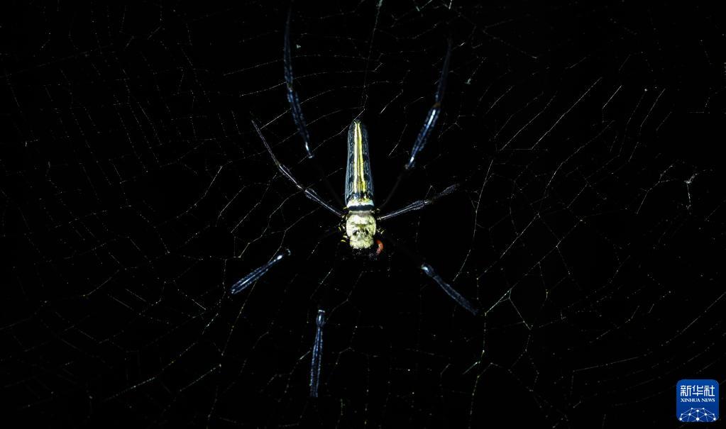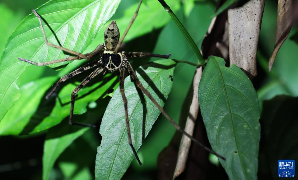 在中国海南热带雨林国家公园吊罗山片区拍摄的白额高脚蛛(6月14日摄)。新华社